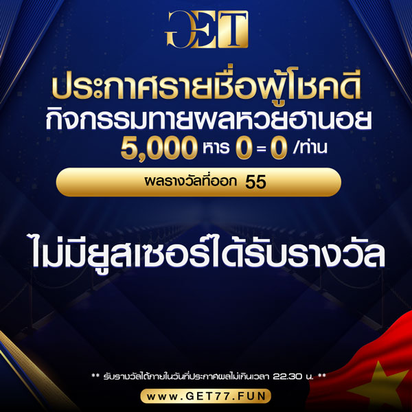 หมดเขตรับรางวัล เวลา 22:30 ของวันที่ประกาศผล