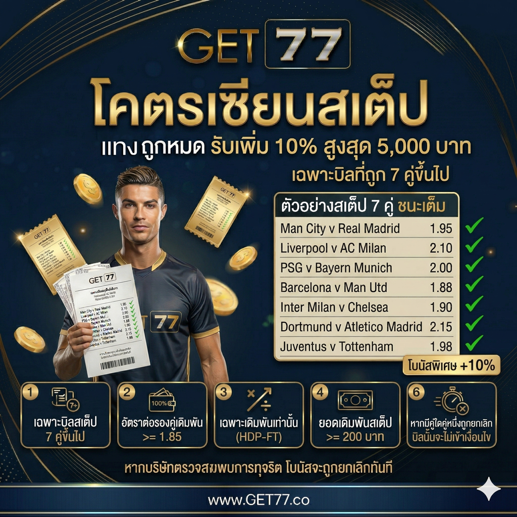 แทงถูกหมด รับเพิ่ม 10% สูงสุด 5,000 บาท